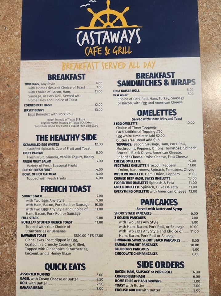 You notice the place before you even read the sign-bright windows, beachy colors, and the kind of relaxed buzz that makes you slow your walk without realizing it. My first stop at Castaways Cafe And Grill happened after a long morning on the boardwalk, when I needed coffee and something real, not another granola bar. The address is 1671 Beaver Dam Rd, Point Pleasant, NJ 08742, United States, and it sits just far enough from the tourist crush that locals still treat it like their own hangout.